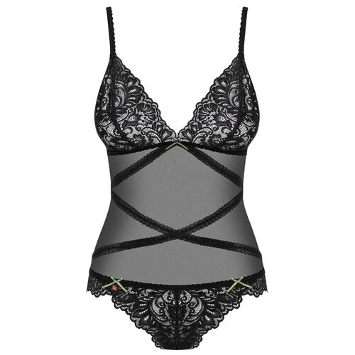 Uma noite para dois e você não tem ideia de como surpreender seu parceiro? Você sabe exatamente o que o impactará. Claro ... uma peça de lingerie Obsessiva Escolha um ursinho que se adapte ao seu corpo e você não precise tirar. Com um fundo confortável feito de atacadores e um top ultra sexy, realçando perfeitamente a figura! Dê uma olhada, sorria, entre no quarto e mãos à obra!
