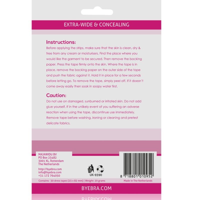 Adesivo de alta resistência e conforto, hipoalergênico, transparente e muito discreto, que se adapta suavemente ao corpo. Você pode usá-lo para fixar o decote do vestido (perfeito para decotes baixos), as alças do vestido, as aberturas na camisa ou simplesmente para ajustar as mangas