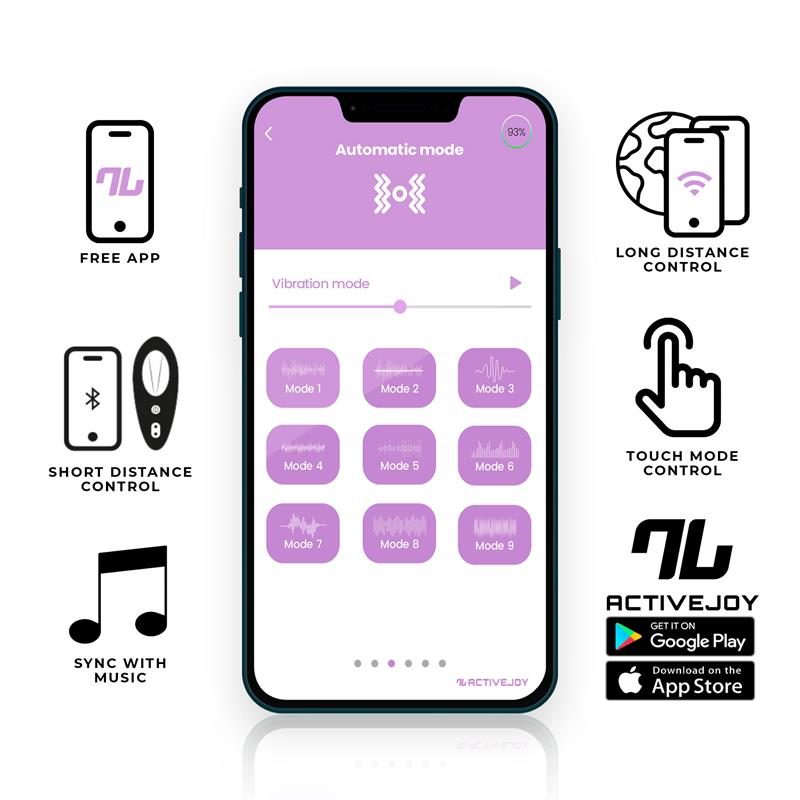 Como mencionei antes, com ActiveJoy® você pode curtir com seu parceiro tanto a curta quanto a longa distância, tocar ao ritmo da música e explorar seus inúmeros modos e velocidades de vibração usando a função de toque Touch Control, entre outras possibilidades. Esta função destaca-se como a melhor, pois permite usufruir de todas as funcionalidades de forma simples e intuitiva. Aumente ou diminua a velocidade, altere a função ou deixe o seu parceiro assumir o controle; As possibilidades são infinitas e não queremos limitar o seu prazer onde quer que esteja.