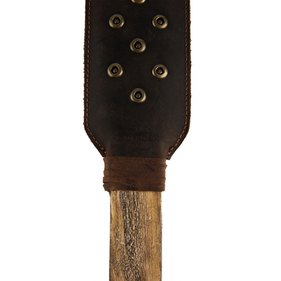 Lisa de um lado e rebitada do outro, esta é uma raquete para jogo de qualidade. Feito de couro genuíno, latão e madeira de abeto, o cabeçote tem um núcleo de metal com memória, por isso retorna continuamente à forma.