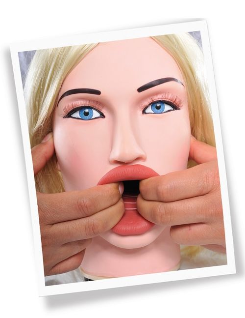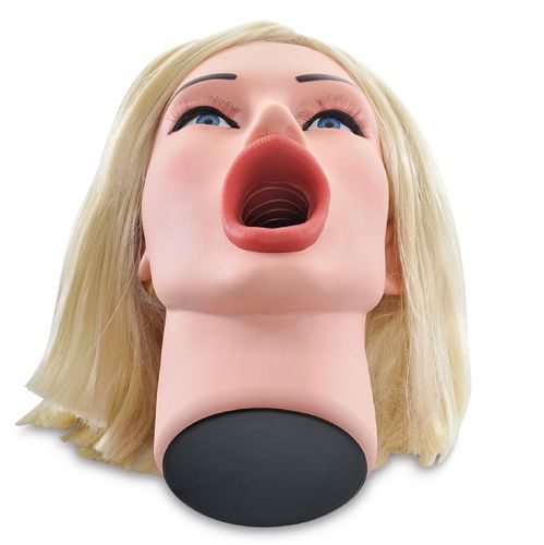 Esta incrível cabeça inflável em tamanho real foi meticulosamente projetada com recursos reais para uma experiência verdadeiramente realista. O seu atraente rosto moldado em 3D é coberto com luxuosos cabelos loiros que desejam ser puxados para trás. Com a boca aberta, pronta para ser penetrada.