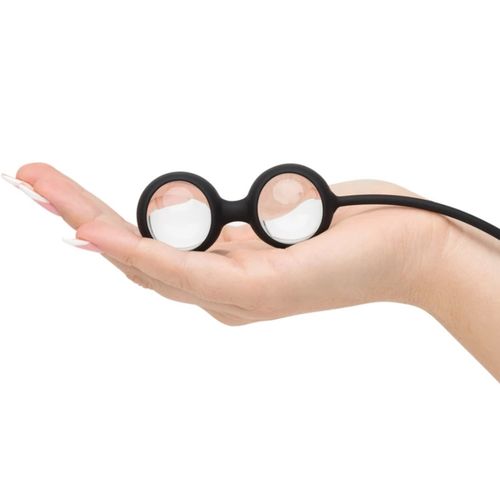 Suave e elegante, com arnês de silicone preto e bolas de vidro de borossilicato.