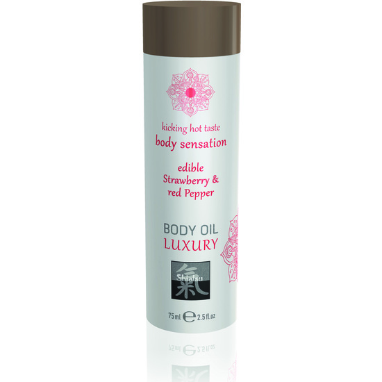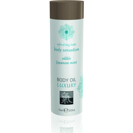 SHIATSU LUXURY BODY OIL EDIBLE é um óleo de massagem erótico comestível com um atraente aroma afrodisíaco.