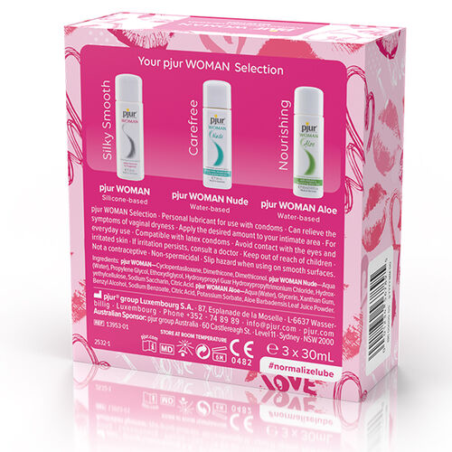 Uma seleção dos três lubrificantes premium Pjur WOMAN mais amados em uma linda caixa.