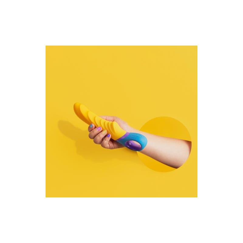 G Tone é um vibrador colorido em forma de estimular o ponto G. Possui 2 motores potentes e 12 funções de vibração. Graças à sua forma de onda e à pequena saliência na área do clitóris, você terá um prazer duplo. É totalmente recarregável por USB e sua cor vai deixar você sem palavras. Lembre-se de limpar o Tone antes e depois de cada uso e usar um lubrificante à base de água.
