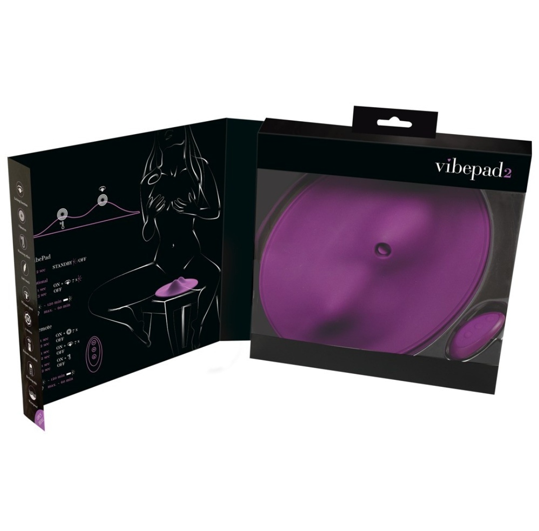 Vibepad é um inovador vibrador almofada com 2 motores e 2 ondas de estimulação anatómicas perfeitamente adaptadas à vagona, ao clitóris e ao ânus. Ambas as ondas oferecem 7 modos de vibração - a onda maior tem também uma língua vibratória integrada (7 modos de lamber) e a onda menor tem uma função de calor (máx. 55°C). Todas as funções podem ser controladas separadamente. O telecomando incluído com um alcance de até 10 metros assegura uma operação conveniente. A função de desligar automático após 30 minutos de inatividade garante a segurança.